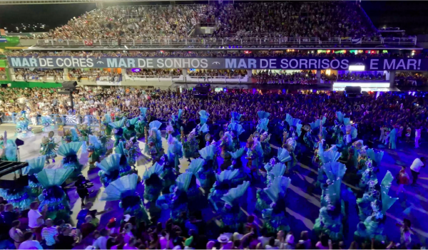 Disfruta cómo las escuelas se presentan en ambos lados del Sambódromo, con momentos clave ocurriendo en todas las direcciones.